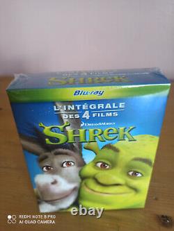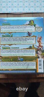 Neuf sous blister, jamais ouvert, envoi rapide et soigné. Contient : - Shrek - Shrek 2 - "Shrek le troisième" - "Shrek 4 - Il était une fin - Le dernier chapitre" avec le court métrage "Le Noël Shrektaculaire de l'Ane".